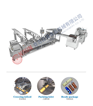 該機是我公司QNF360機型的換代產(chǎn)品。該無托盒包裝機使用伺服電機控制,使該機自動化程度進一步提升、性能更加穩(wěn)定可靠、操作更加簡便。最顯著的特點是:包裝產(chǎn)品尺寸變換非常簡單。 用 途: 適用于多枚餅干的無托盤集合大包裝,方、圓、橢圓等各種形狀餅干皆可。 主要技術參數(shù): 包裝能力:30-100包/分(據(jù)包裝膜材質(zhì),厚度及包裝規(guī)格確定) 包裝規(guī)格:長100-240mm,寬40-80mm,高40-70mm 總機尺寸:主機部分4020mm*1150mm*1840mm 供料部分3100*580mm*1130mm 裝機總?cè)萘浚?.2KW, 單相 220V, 50Hz 總重量:1200kg 包裝材料:紙/PE,OPP/PE,OPP/AL/PE等適合于加熱封口的包裝材料 機械特性 l 機械結(jié)構(gòu)的整體設計簡單、合理,操作簡便,調(diào)節(jié)方便 l 使用夾運輸送機構(gòu),完全可靠的解決了包裝不同長度物品尺寸變換的繁瑣及倒餅的弊病。 l 縱封裝置采用三對牽引輪構(gòu)成,保證封口高速封合、穩(wěn)定、美觀。 l 精巧的自動供料裝置可將包裝物準確無誤投放于主機進入包裝封口。 l 包裝尺寸調(diào)節(jié)方便快捷。 電氣特性 l 送膜、供料采用數(shù)字伺服電機控制系統(tǒng) l 供料部分采用運動控制單元,供料同步、準確、自動記憶 l 變頻調(diào)速,方便、準確、可靠 l 色表追蹤點自動定位、自動跟標 l 包裝袋自動測量、記憶 l 供料位置即使在運動中也可隨意調(diào)整